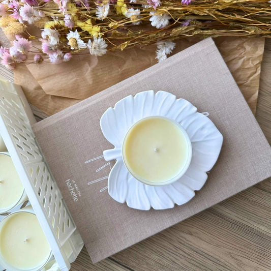 Toutes les cires que j'utilise sont d'origine 100% végétale, sans additifs et sans colorants. Les parfums sont formulés sans CMR, sans phtalates et sans parabènes.