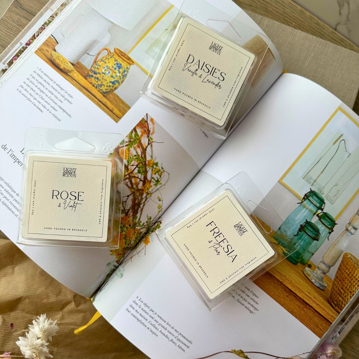 - Breek een stukje van de waxmelt af en leg dit in het schaaltje van je geurbrander.